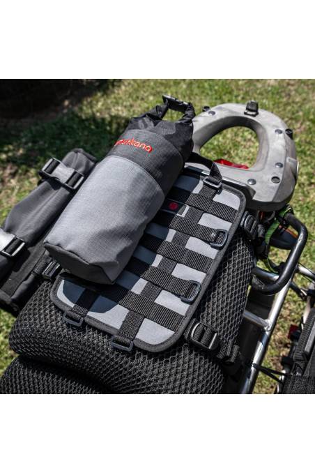 Easily straps onto the rear seat, tail plate, or touring panniers with 4 quick release ladder lock buckles. With the MOLLE/Pals webbing fit any of the Turkana TrekBag™’s from 3L,5L,10L,15L OR 20L or Oxpacker water bottle holders. With the additional anchor points strap down any additional bags, pouches and gear or small roll bags with ease. Building the perfect storage system for any journey, bite-sized or epic.